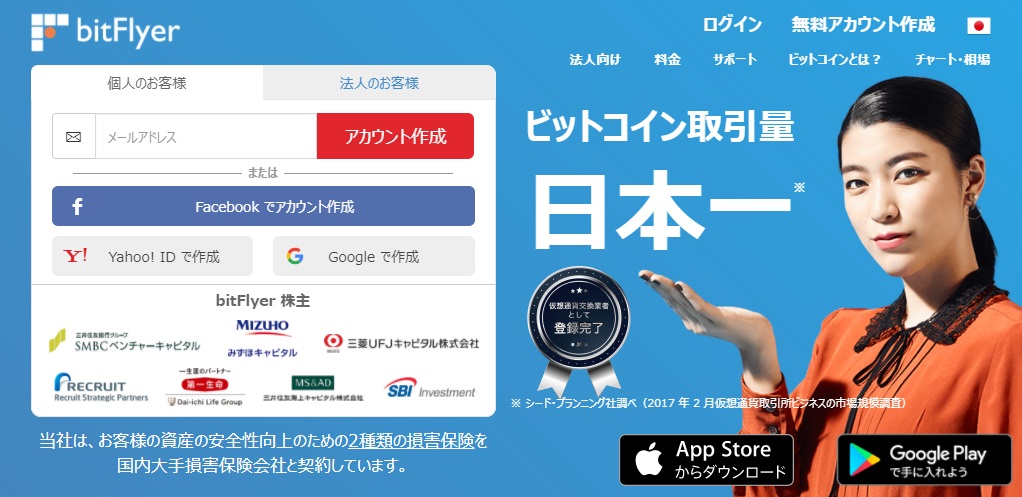 ![]() | 国内市場においてビットコインの取引量は5年連続1位であり、世界有数の出来高を誇るbitFlyer。ビットコインの現物取引、レバレッジ取引で多くの仮想通貨トレーダーから人気を集める。 |